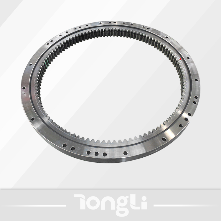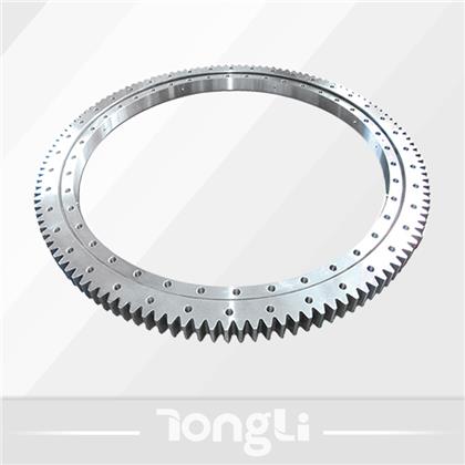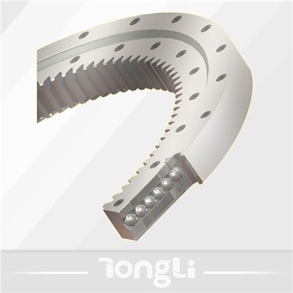 單排球式回轉支承以一排鋼球作為滾動體,鋼球與滾道四點接觸,能同時承受軸向力、徑向力和傾覆力矩。滾道中心直徑≤1800mm,優(yōu)先選用單排球式回轉支承。